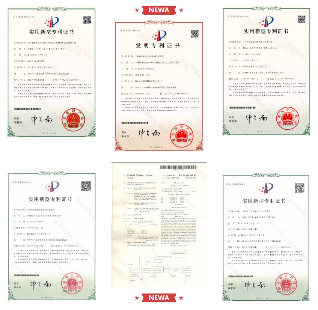 煙臺金正環(huán)保“脫穩(wěn)耦合平板膜”技術集成了先進的預處理、脫穩(wěn)結(jié)晶、平板膜技術、雜鹽資源化等先進工藝和設備,形成了獨有的工藝專利技術,具有完全自主知識產(chǎn)權(quán)。作為全球少數(shù)掌握膜法水處理全產(chǎn)業(yè)鏈企業(yè),打通了從膜材料、膜組件、膜集成系統(tǒng)、工藝包、項目建設與運營、智慧水務運營和雜鹽資源化利用。副產(chǎn)物硫酸鈉達到GB/T6009-2014《工業(yè)無水硫酸鈉》I類一等品、硫酸鈣達到GB/T37785-2019《煙氣脫硫石膏》一級標準,回收率可達95%以上,實現(xiàn)效益最大化。目前,公司擁有膜法水處理相關專利149項,多項技術打破國外壟斷,徹底解決了“卡脖子”問題。