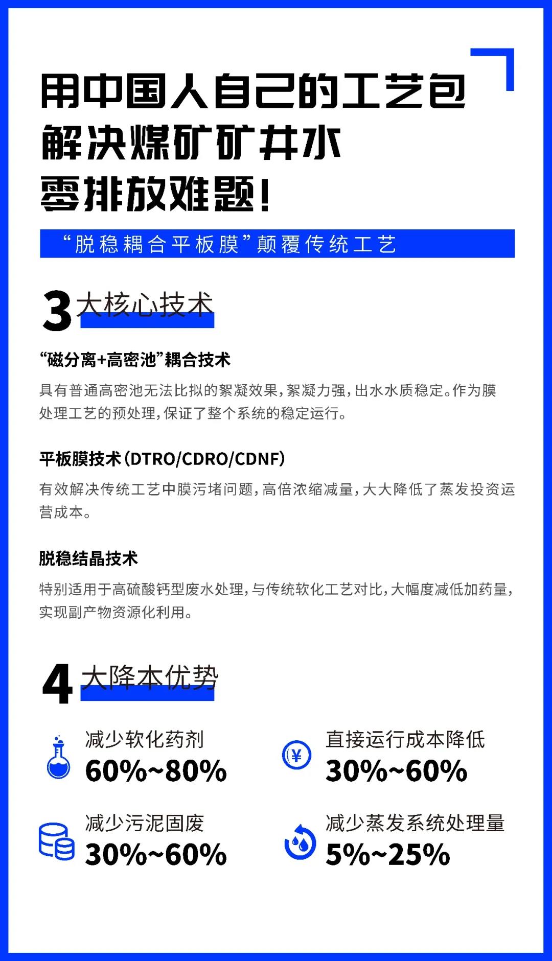 煙臺金正環(huán)保“脫穩(wěn)耦合平板膜法礦井水零排放集成裝備”入編煤炭行業(yè),作為產(chǎn)業(yè)化示范裝備,成功應用在山能集團、陜煤化集團等多個大型礦井水零排放項目上,不僅實現(xiàn)礦井水資源化利用,而且真正做到了節(jié)能降耗,超低成本運營,徹底解決了傳統(tǒng)化學藥劑處理工藝弊端,高質(zhì)量引領煤炭行業(yè)創(chuàng)新發(fā)展。